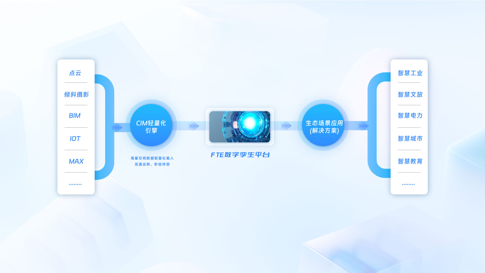 兼容点云、IOT、GIS、BIM、SQL等上千种数据格式的标准化、数据治理、数据融合,实现二三维数据的高精度叠加融合,构建时空一体、双向互动的孪生数据地板